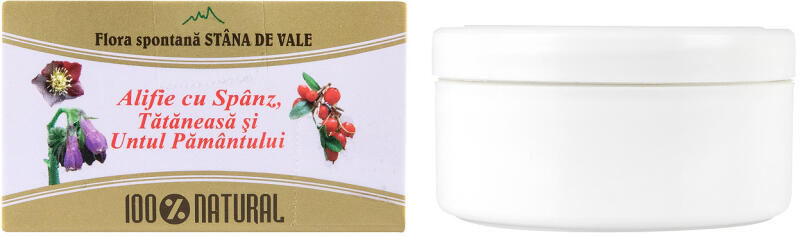 Alifie cu Spânz, Tătăneasă și Untul Pământului - Ambro Plant, este indicată în reumatism articular și abarticular (reumatismul părților moi periarticulare), artrite, varice, sinuzite, discopatii, lombosciatică, entorse, luxații și contuzii.